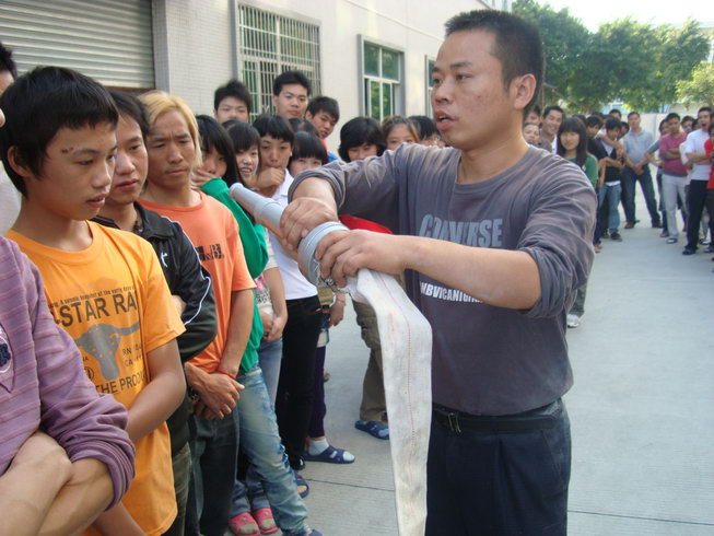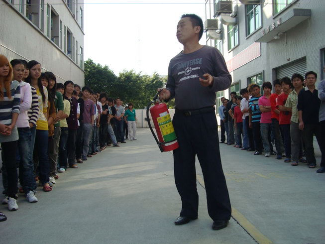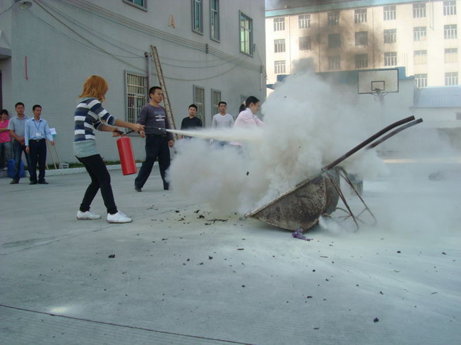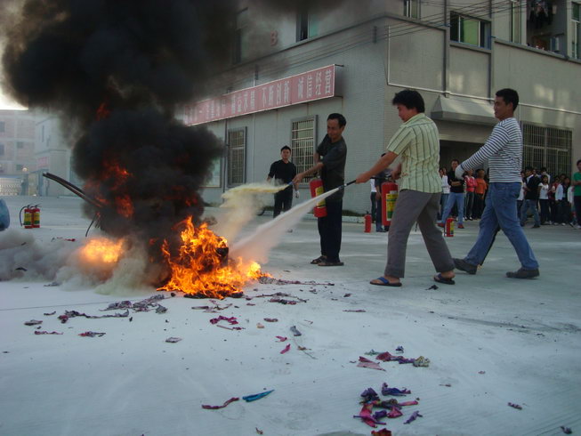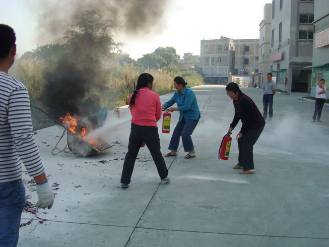 員工積極學習使用滅火器